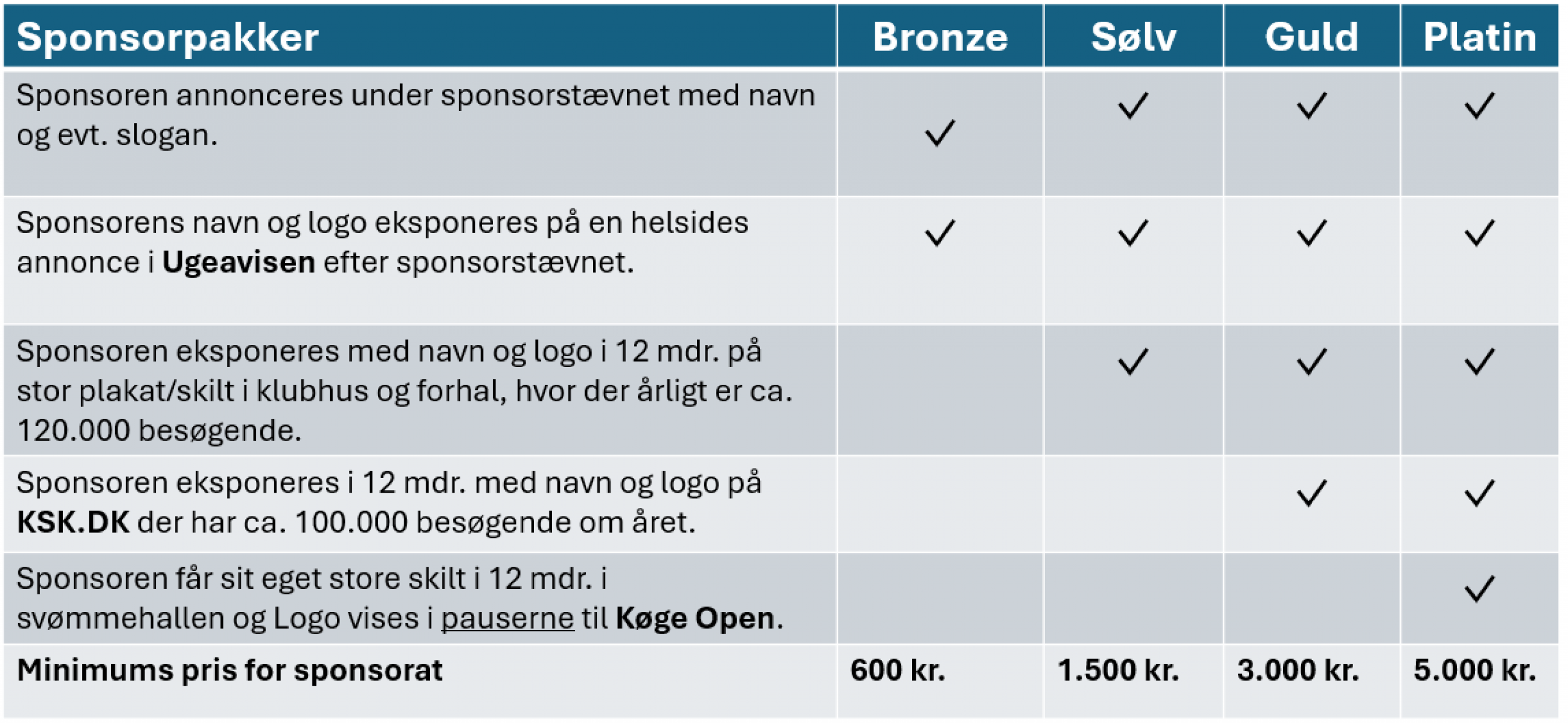 Der er et begrænset antal hovedsponorater og selvfølgelig branche eksklusivitet. For mere information om hovedsponorater skriv til kontor@ksk.dk